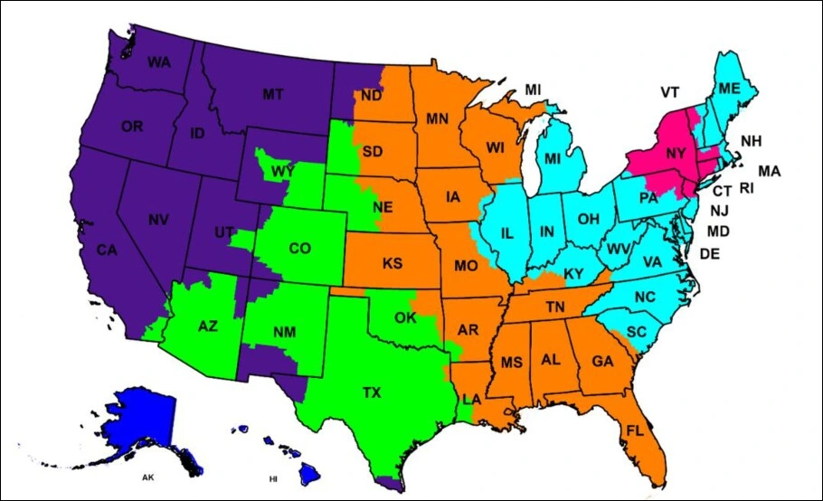 The maps below show the days in transit from our main plant location in Ogdensburg, NY.
